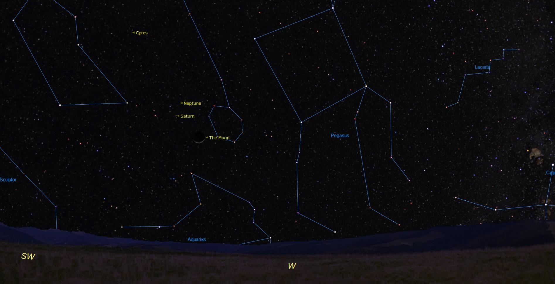 Neptuno otro planeta apenas visible con magnitud +7.9, en el cielo nocturno a principios de mes, búsquelo en la constelación de Piscis.